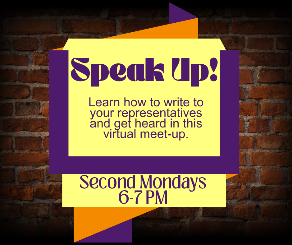 At this virtual meet-up we'll go over how to write to your representatives and get heard. We’ll draft a message that can be used to email or read for leaving a voicemail and also go over sites and resources to help find your exact representatives to make sure you're sending it to the right person!